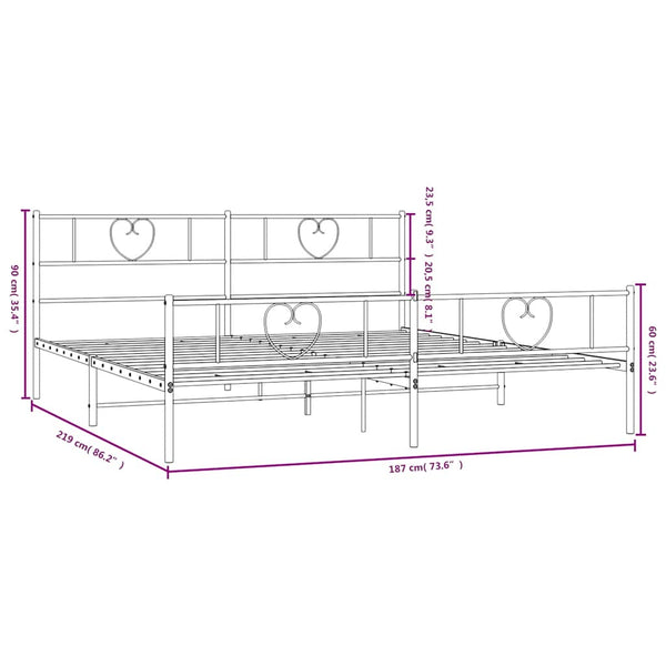 Valkoinen metallinen sängynrunko päädyillä 183x213cm