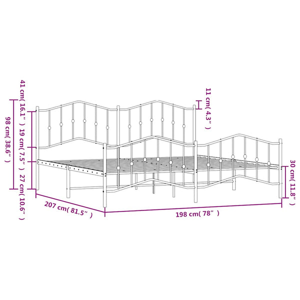 Valkoinen metallinen sängynrunko päädyillä 193x203cm