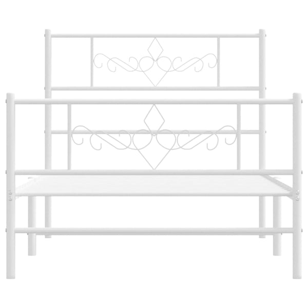 Valkoinen metallinen sängynrunko päädyillä 80x200cm