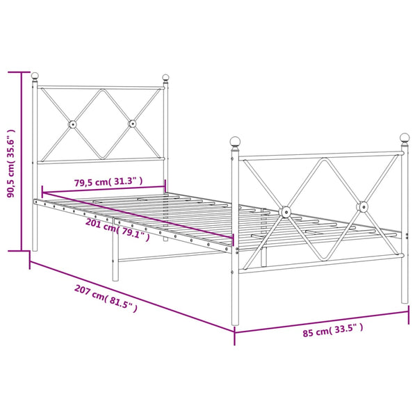 Valkoinen metallinen sängynrunko päädyillä 80x200cm