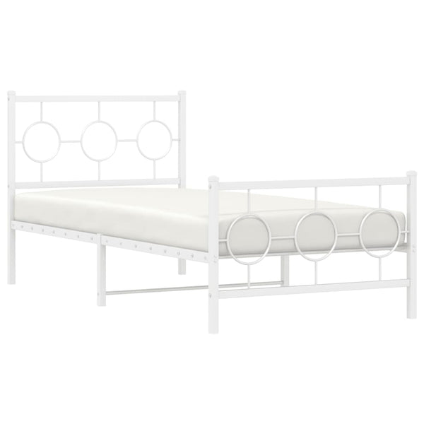 Valkoinen metallinen sängynrunko päädyillä 90x190cm