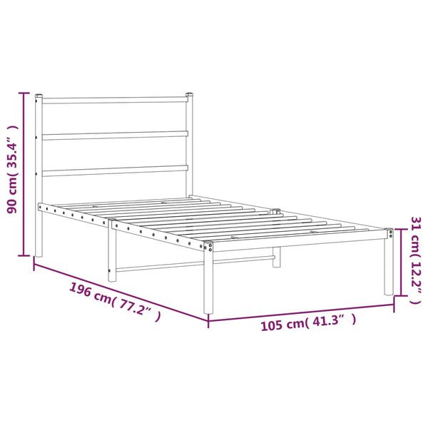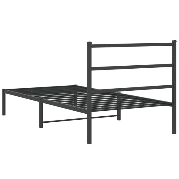 Musta metallinen sängynrunko päädyllä 100x190cm