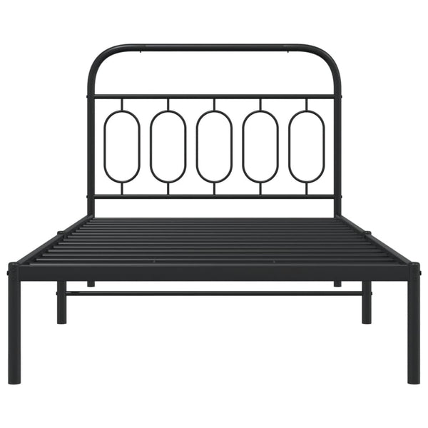 Musta metallinen sängynrunko päädyllä 100x190cm