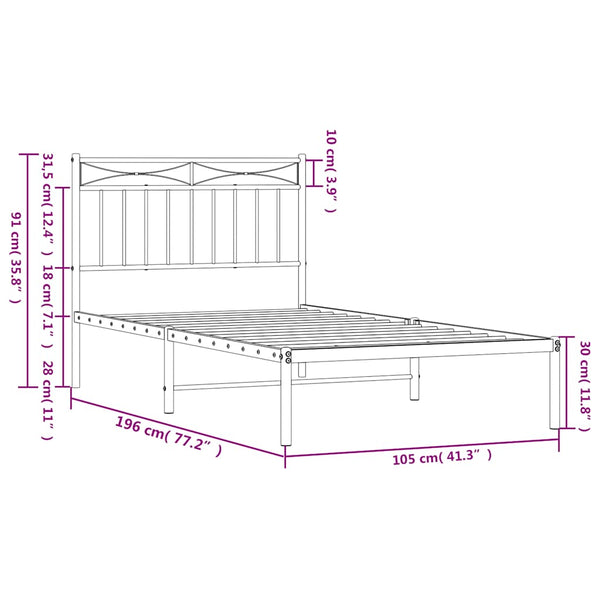 Musta metallinen sängynrunko päädyllä 100x190cm