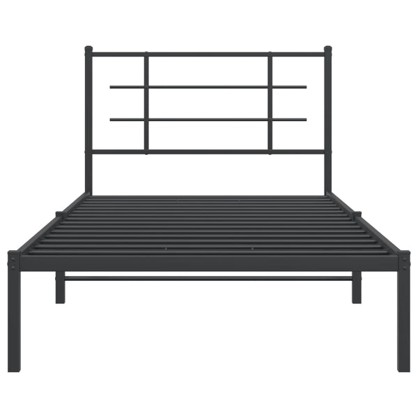 Musta metallinen sängynrunko päädyllä 107x203cm