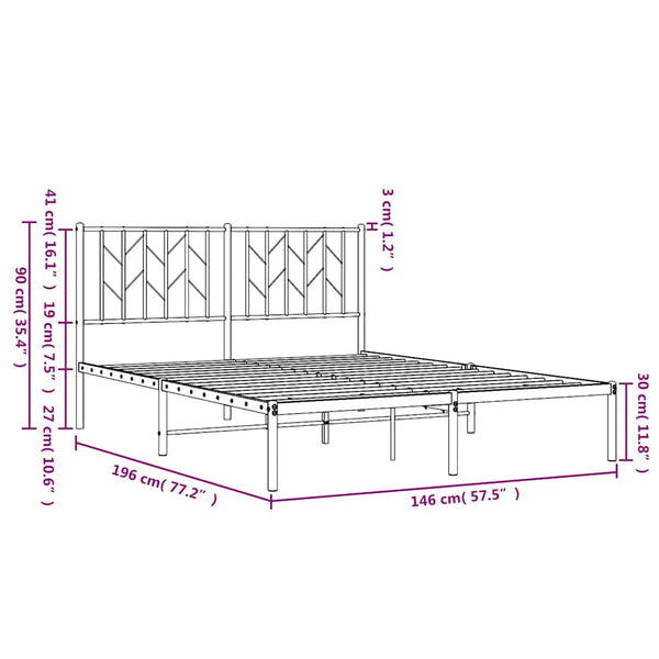 Musta metallinen sängynrunko päädyllä 140x190cm