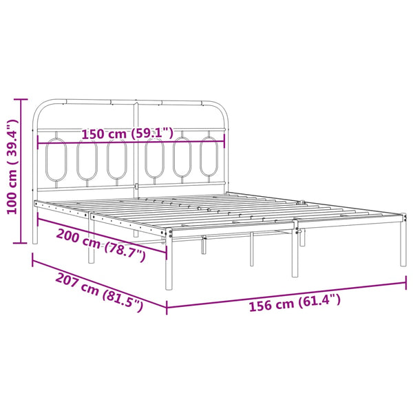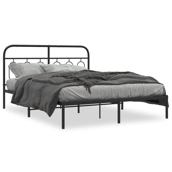 Musta metallinen sängynrunko päädyllä 150x200cm