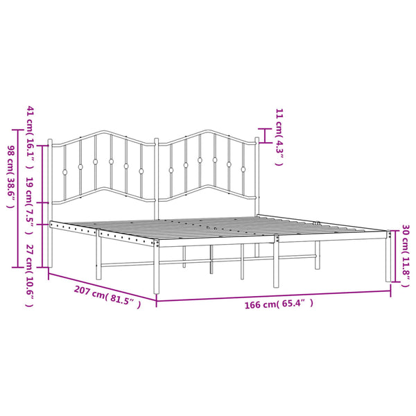Musta metallinen sängynrunko päädyllä 160x200cm