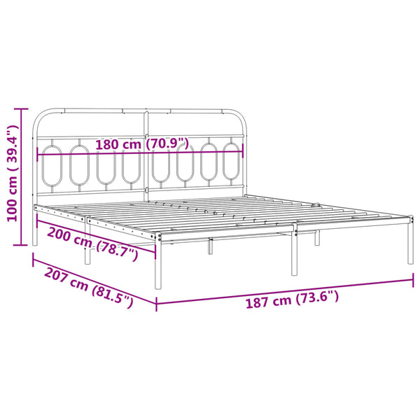 Musta metallinen sängynrunko päädyllä 180x200cm