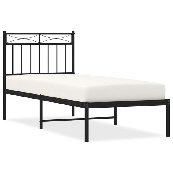 Musta metallinen sängynrunko päädyllä 80x200cm