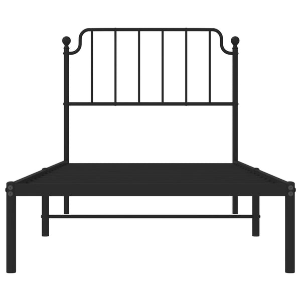 Musta metallinen sängynrunko päädyllä 90x200cm