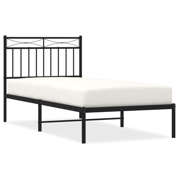 Musta metallinen sängynrunko päädyllä 90x200cm