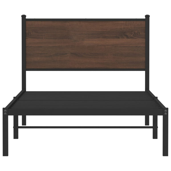 Ruskea tammi metallinen sängynrunko päädyllä 100x190cm