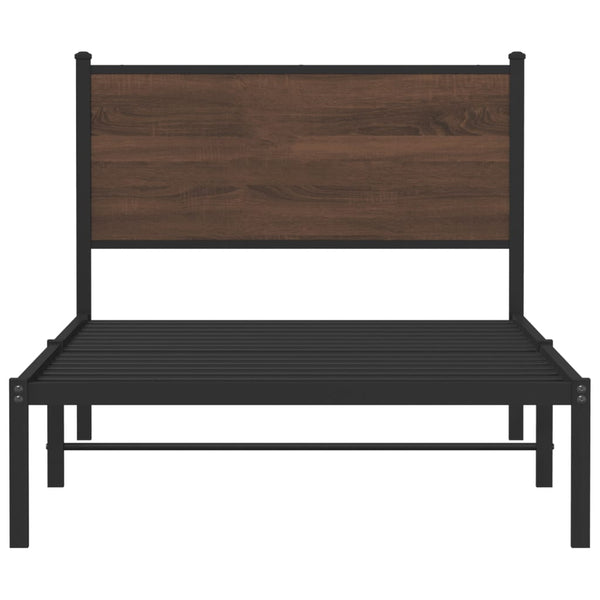Ruskea tammi metallinen sängynrunko päädyllä 107x203cm