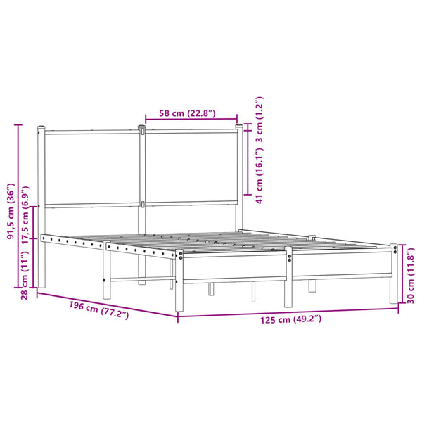 Ruskea tammi metallinen sängynrunko päädyllä 120x190cm