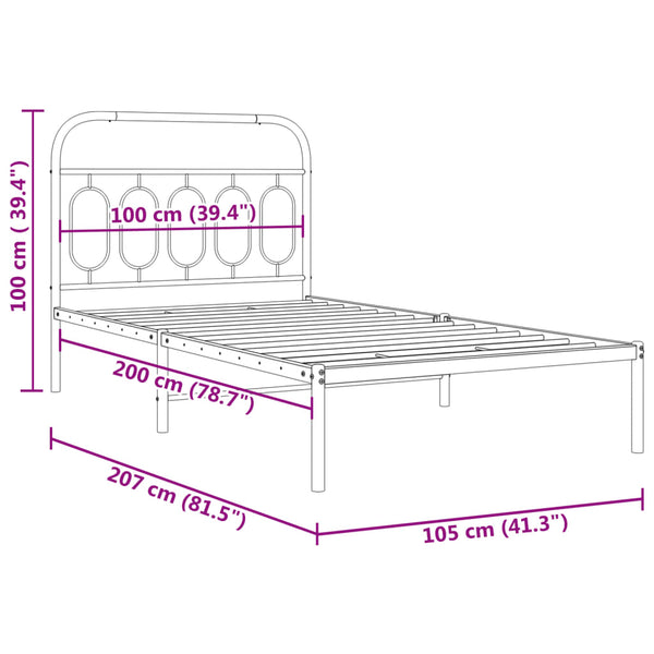 Valkoinen metallinen sängynrunko päädyllä 100x200cm