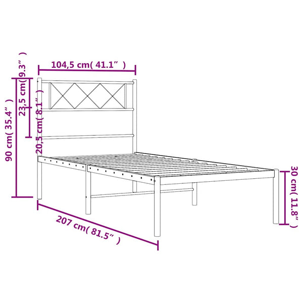 Valkoinen metallinen sängynrunko päädyllä 100x200cm