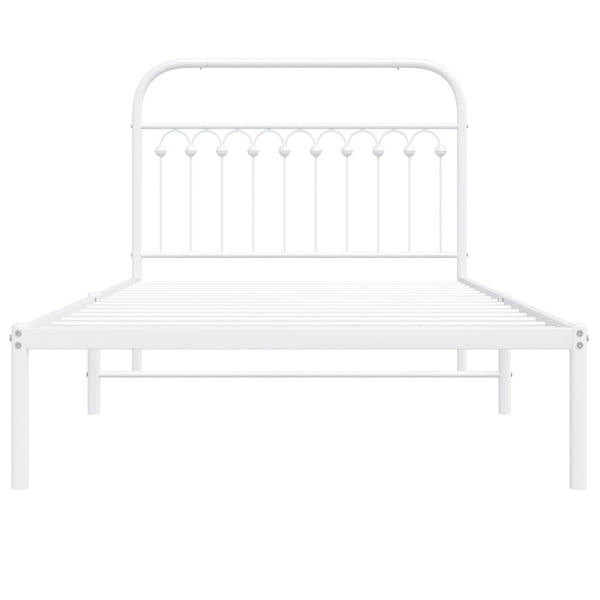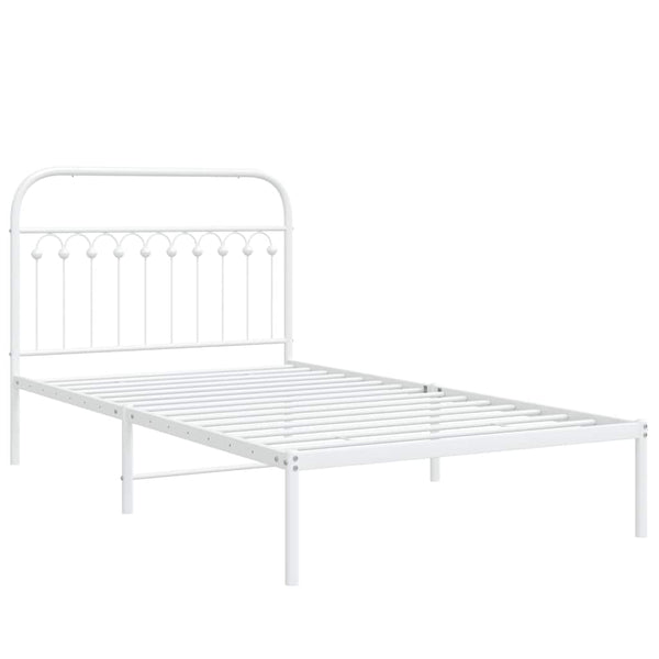 Valkoinen metallinen sängynrunko päädyllä 107x203cm