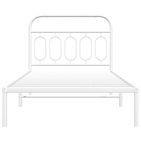 Valkoinen metallinen sängynrunko päädyllä 107x203cm