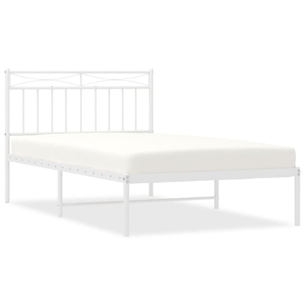 Valkoinen metallinen sängynrunko päädyllä 107x203cm