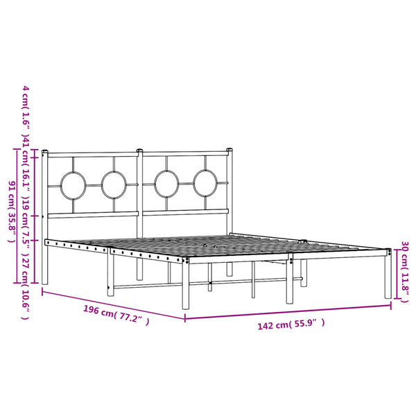 Valkoinen metallinen sängynrunko päädyllä 135x190cm