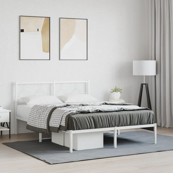 Valkoinen metallinen sängynrunko päädyllä 140x190cm