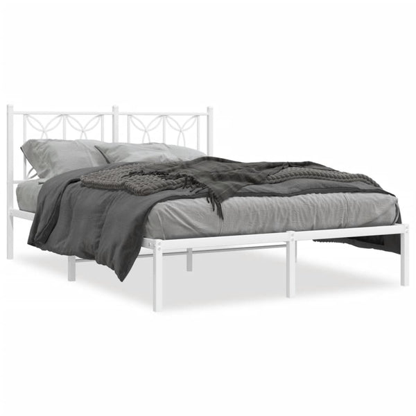 Valkoinen metallinen sängynrunko päädyllä 140x190cm