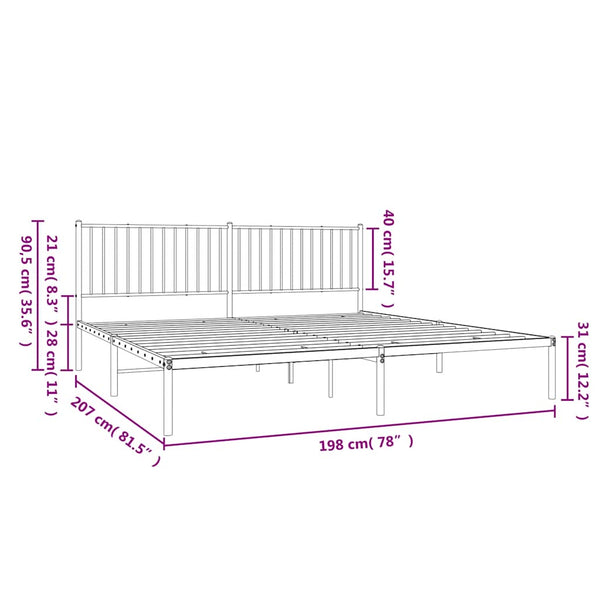 Valkoinen metallinen sängynrunko päädyllä 193x203cm