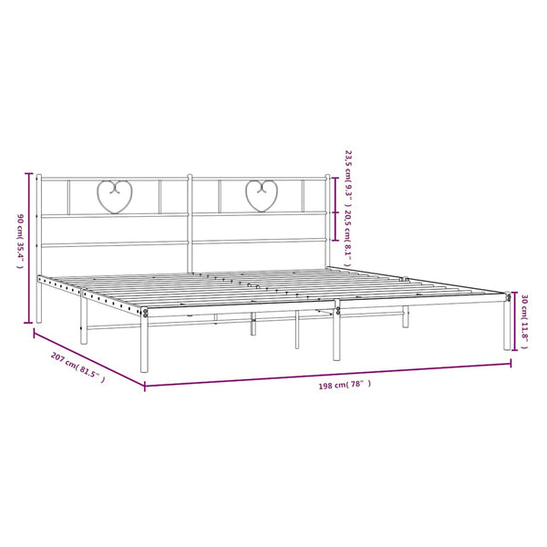 Valkoinen metallinen sängynrunko päädyllä 193x203cm