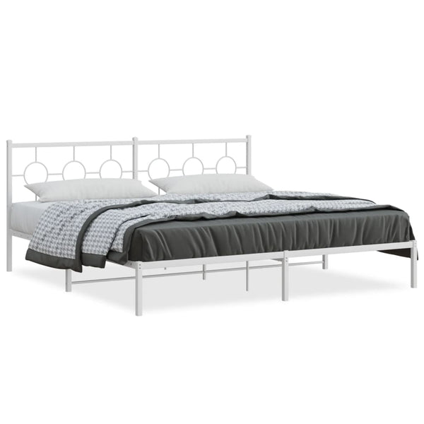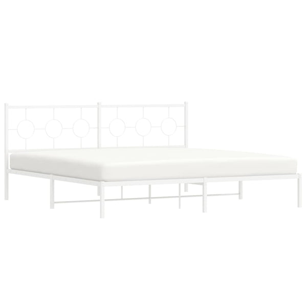Valkoinen metallinen sängynrunko päädyllä 200x200cm
