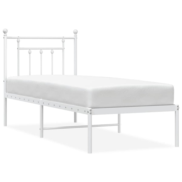 Valkoinen metallinen sängynrunko päädyllä 75x190cm