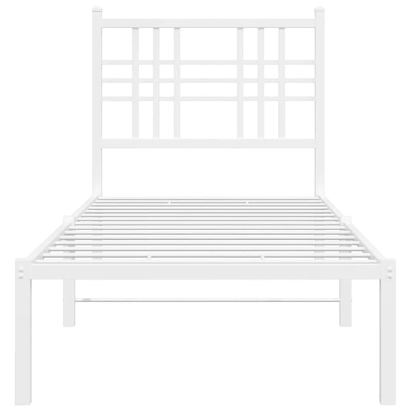 Valkoinen metallinen sängynrunko päädyllä 75x190cm