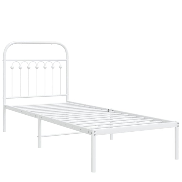 Valkoinen metallinen sängynrunko päädyllä 75x190cm