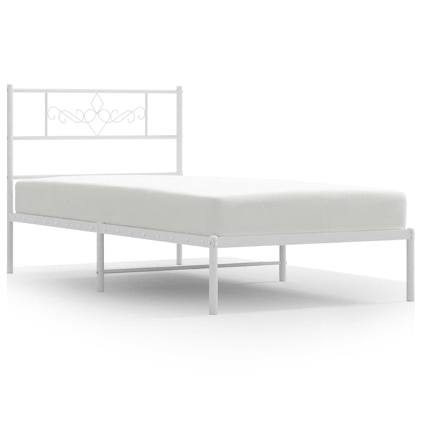 Valkoinen metallinen sängynrunko päädyllä 80x200cm