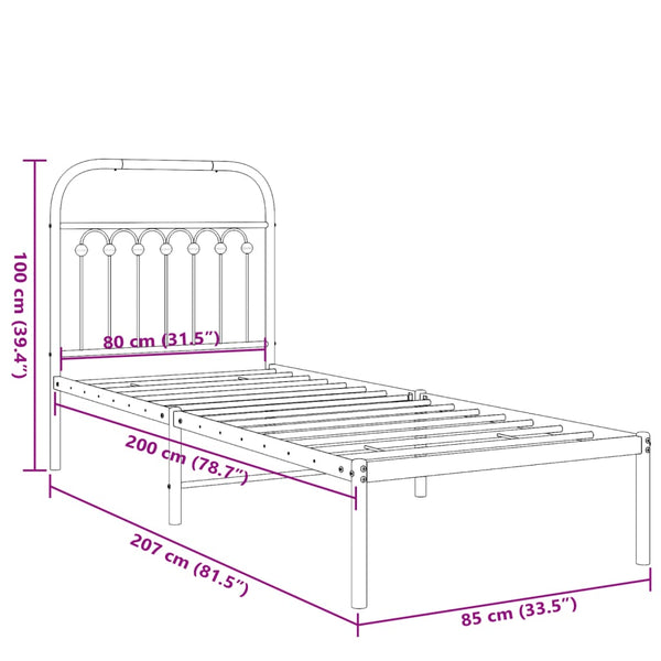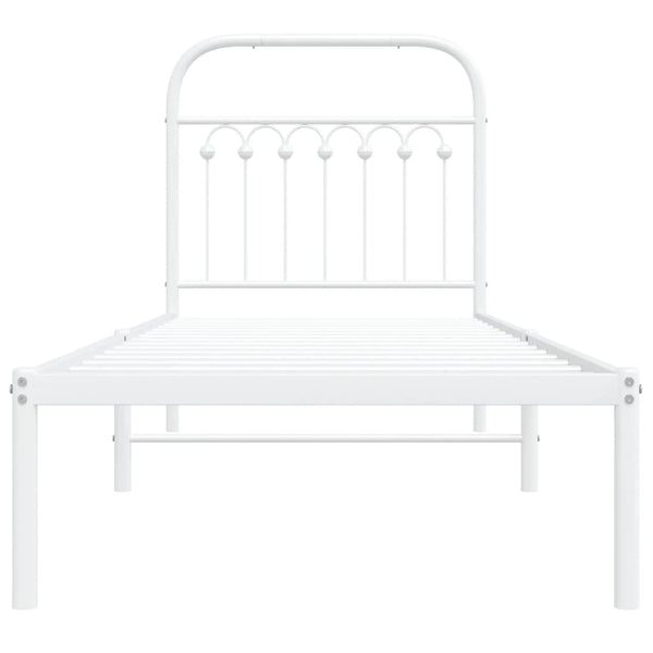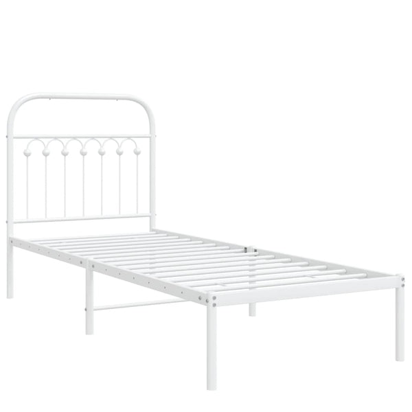 Valkoinen metallinen sängynrunko päädyllä 80x200cm