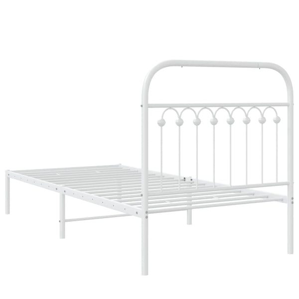 Valkoinen metallinen sängynrunko päädyllä 90x190cm
