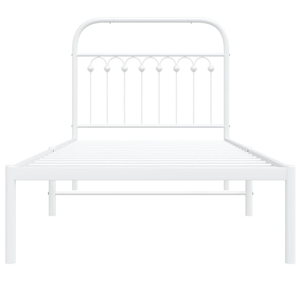 Valkoinen metallinen sängynrunko päädyllä 90x200cm