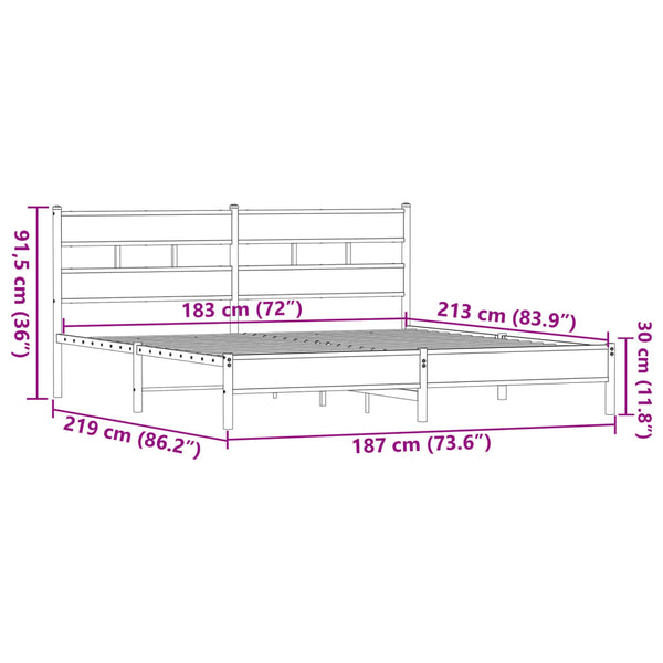 Ruskea tammi metallinen sängynrunko 183x213cm