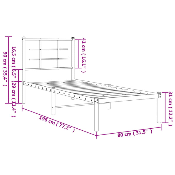 Valkoinen metallisängynrunko ilman patjaa päätylevy 75x190cm
