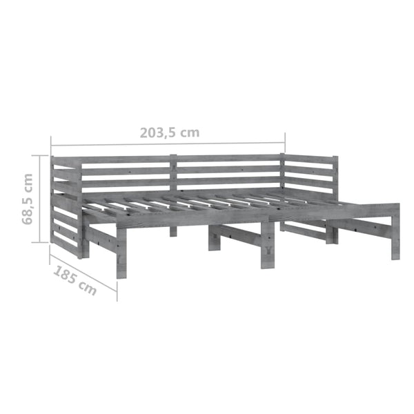 Harmaa päivävuode ulosvedettävä 90x200cm mänty 2x