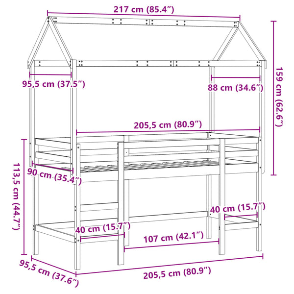 Parvisänky tikkailla ja katoksella 90x200cm mänty