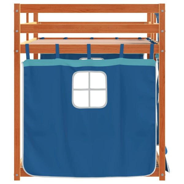 Sininen parvisänky verhoilla 90x190cm mänty