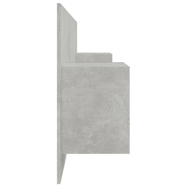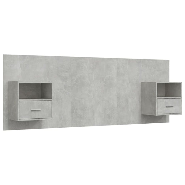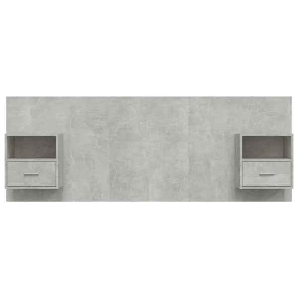 Betoninharmaa sängynpääty säilytystilalla puinen