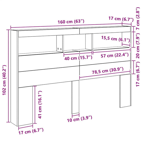 Sängynpäätykaappi 160x17x102cm led-valoilla, artesaani tammi