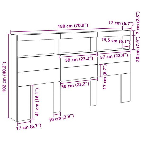 Sängynpäätykaappi 180x17x102cm led-valoilla, artesaani tammi