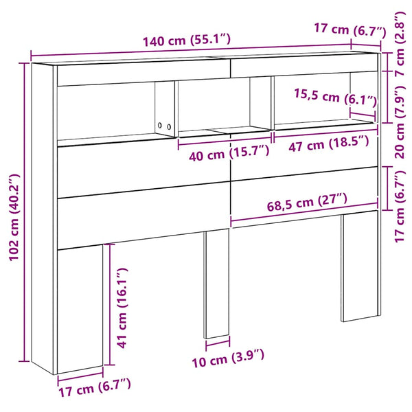 Musta tammi sängynpäätykaappi 140x17x102cm led-valoilla