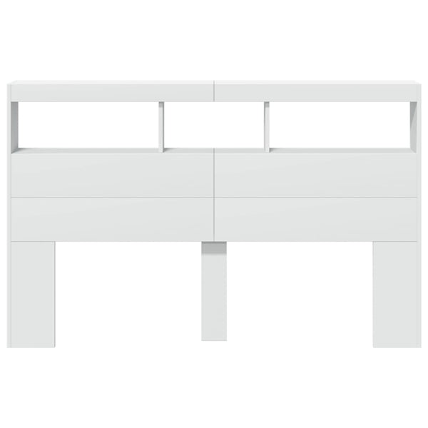 Valkoinen sängynpäätykaappi 160x17x102cm led-valoilla