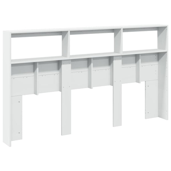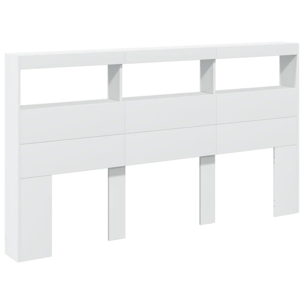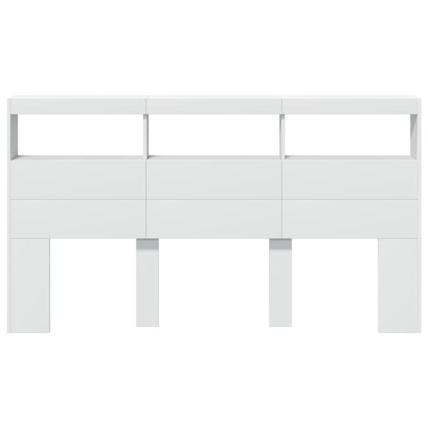 Valkoinen sängynpäätykaappi 180x17x102cm led-valoilla