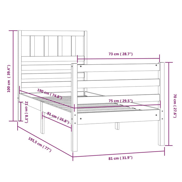 - Tämä sängynrunko sopii patjalle, jonka mitat ovat 75 x 190 cm (2FT6 Small Single).