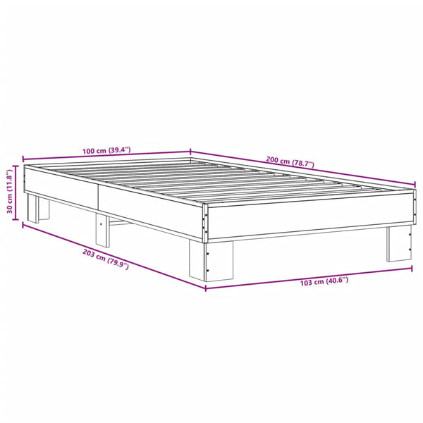 Harmaa sängynrunko 100x200cm puinen ja metalli